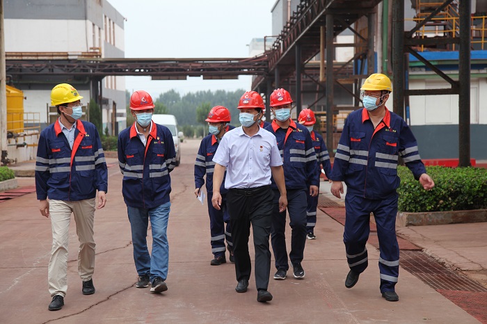 10月2日,招金集團(tuán)經(jīng)濟(jì)運營總監(jiān)張綿慧督導(dǎo)檢查招金精煉安全生產(chǎn)及重點工作