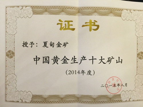 夏甸金礦榮獲2014年“中國(guó)黃金生產(chǎn)十大礦山”稱號(hào)