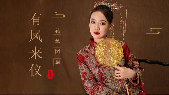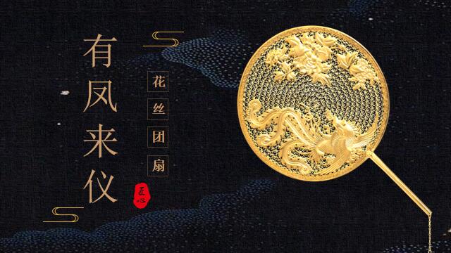 采金為絲,妙手編結(jié)。有鳳來(lái)儀花絲團(tuán)扇以金絲為材質(zhì),采用傳承百年的宮廷技藝--花絲鑲嵌工藝精制而成?;ńz鑲嵌工藝于2008年被列入國(guó)家非物質(zhì)文化遺產(chǎn)名錄,技藝繁復(fù)細(xì)膩,成品華麗精美。有鳳來(lái)儀花絲團(tuán)扇以圓形為輪廓,寓意著團(tuán)圓和美,喜結(jié)善緣,好事圓滿。一根根花絲掐成云頭紋樣式,堆壘攢焊在一起,配以鳳凰、牡丹做裝飾,完美的詮釋了國(guó)色天香、雍容華貴的氣質(zhì)。